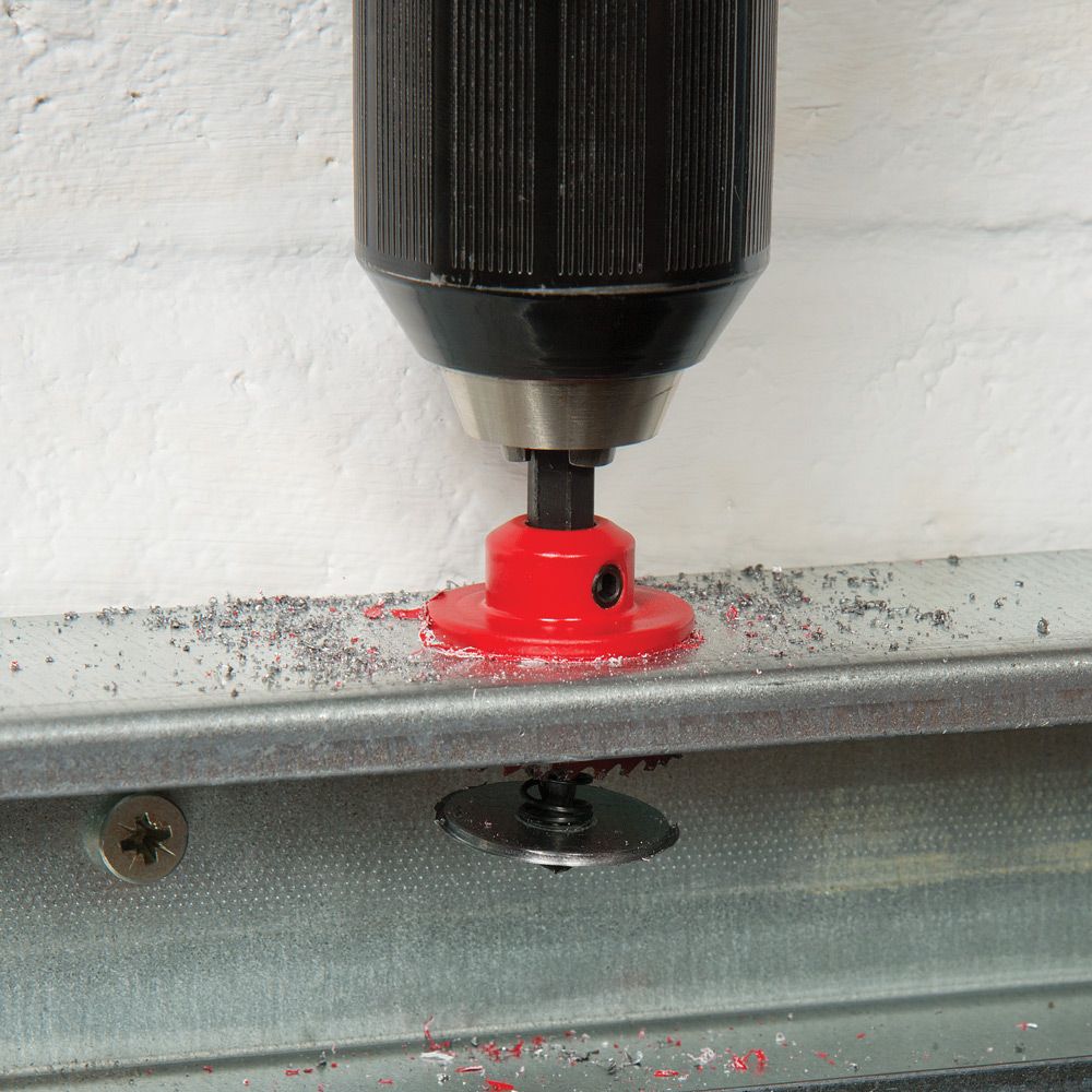 Armeg ACCELER8 hole saw kit, specifically designed to drill through mild and sheet steel efficiently at speed. Armeg’s ACCELER8 range is 37% faster than standard hole saws as it features a slim line kerf, providing reduced resistance for rapid drilling. Smooth and efficient cutting, the hole saw’s teeth are constructed using HSS (high speed steel) reinforced with cobalt for extra durability. Armeg ensures safety through its impact rated shank and internal ejection spring, making it perfect for drilling through steel trunking, cabinets, enclosures, panels and steel cladding.