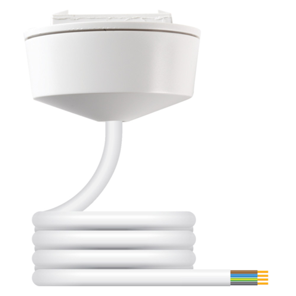 Klik PCR2000 a 3 pin plug In ceiling rose and cover in white, part of the Hager Klik lighting distribution connector system. Plug-in convenience and versatility for lighting. It is a unique modular plug and socket interface provides simultaneous mechanical and electrical connection in one click-in action. Luminaires can be connected in seconds, in absolute safety, without circuit isolation. All live contacts are inaccessible and the earthing connection is made before any other. Klik plugs and sockets feature solid brass terminals and phosphor bronze contacts for good conductivity.
