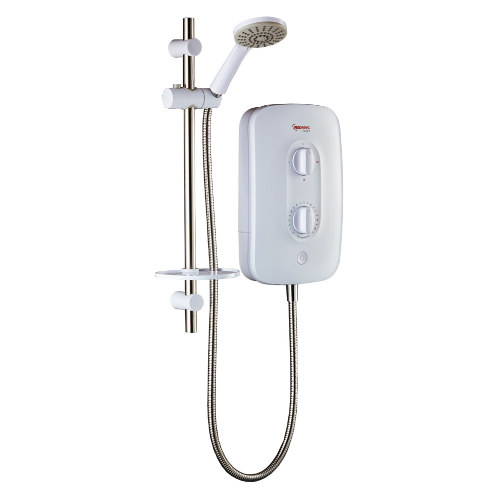 Redring RBS8 Bright 8.5kW electric shower stop start easy fit connectivity is from The Bright range of multi connection electric showers are simple to use and extremely easy to fit. Bright units have 8 water entry points and 6 cable entry points. On the front of the shower there is a start and stop button, a separate temperature control allowing you to choose your preferred temperature and a power selector that allows you to choose full power, economy 1 or 2 and a cold only setting that comes in handy for rinsing the bath or shower enclosure.