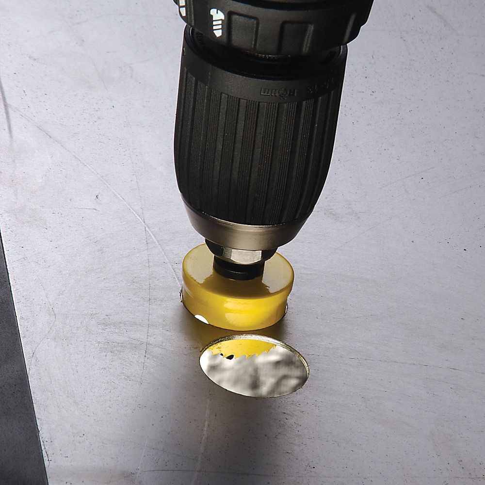 - Hole saw comes complete with arbor, pilot drill and ejector spring