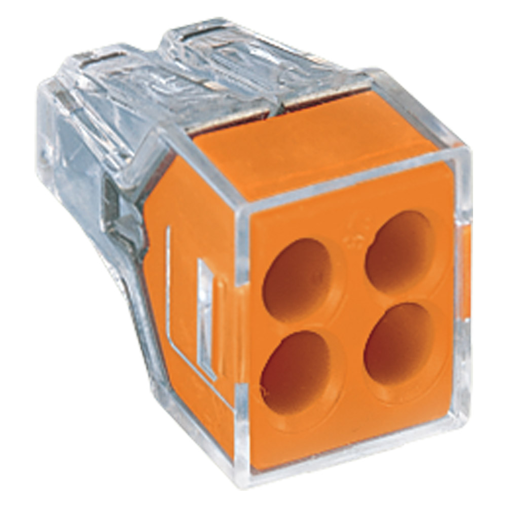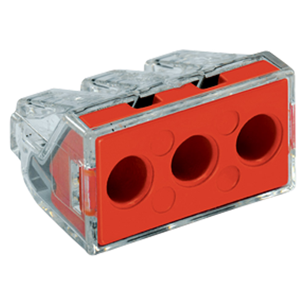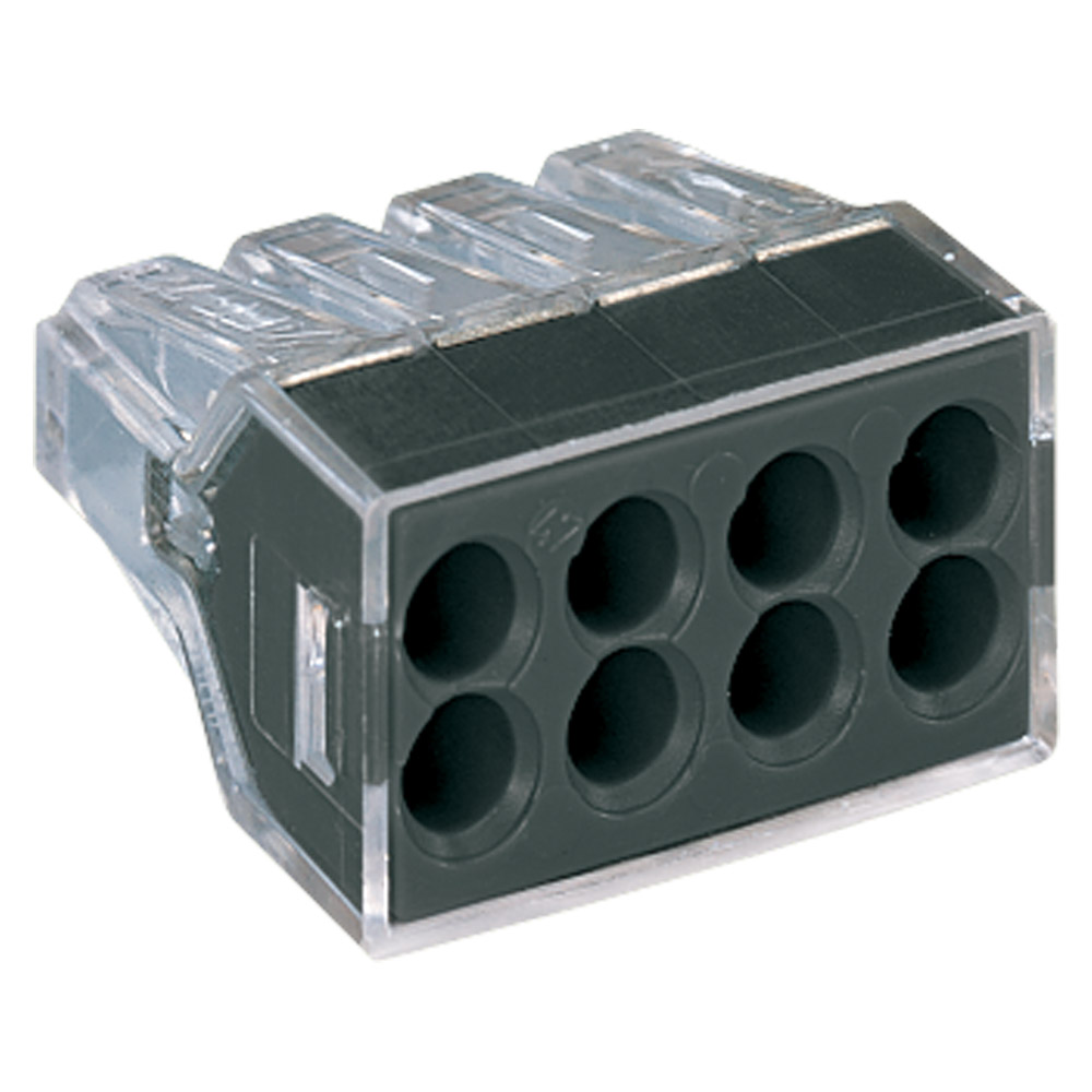 The Wago 773 series push wire connector is fast and compact, designed for use within in a junction box. Simply strip your cables to a length of 12mm and push them into the terminal block. The cage clamp connection holds the cables securely and reliably in place, it couldn't be easier.