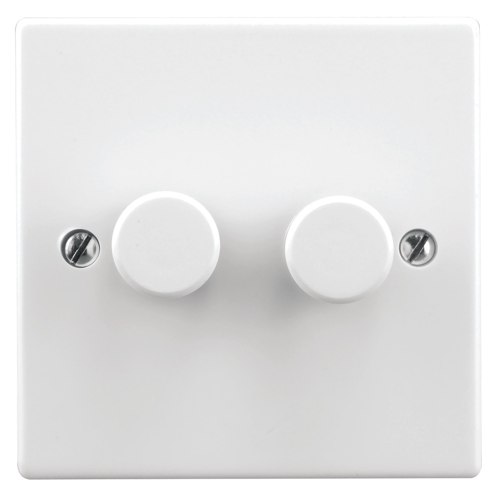 Zano ZMSP151 LED dimmer switch 2 Gang 150W 2 Way slim profile with rounded corners white plastic.